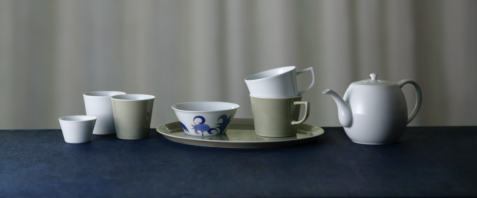 てとて3つのライン、 マユ[白磁]、ヒスイ[青磁]、ツナグ[文様]の 自由な組み合わせをお楽しみいただけます。 シンプルなラインアップは、 お手持ちのどんなうつわとも相性よくお使いいただけます。 |